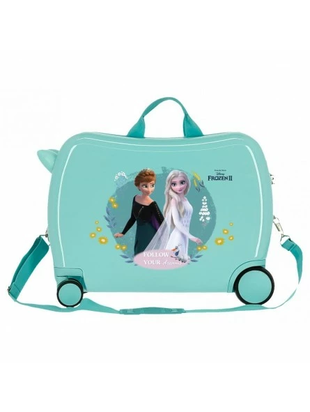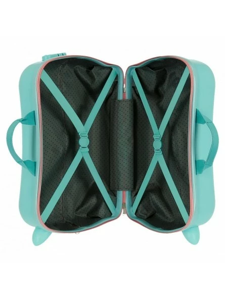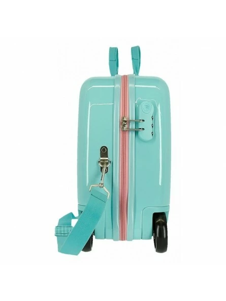 Maleta infantil de 38x50x20 cm. (ruedas y asa incluida). Tiene una capacidad de 34 litros y pesa 2,1 kg. y está fabricada en ABS, un material rígido y ligero.