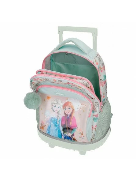 Mochila con ruedas de 32x43x21 cm. fabricada en poliéster.