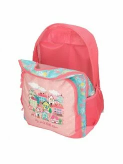 Dos bolsillos frontales de diferentes tamaños y dos bolsillos laterales de red para guardar los pequeños accesorios y el almuerzo.