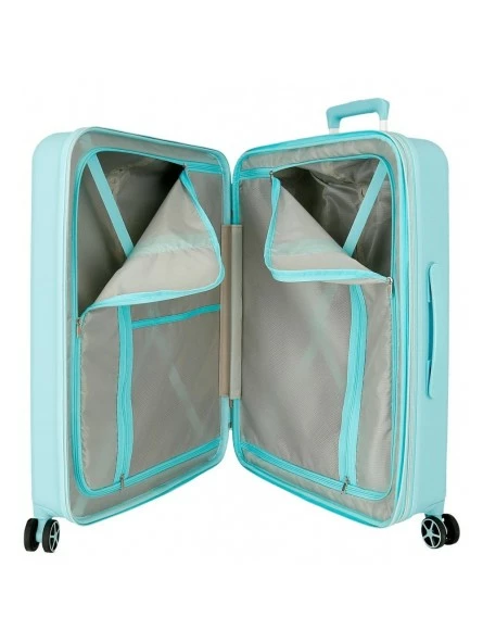 - Una maleta mediana de 48x70x 26 cm. (ruedas y asa incluida) de 74 litros y 3,7 kg.