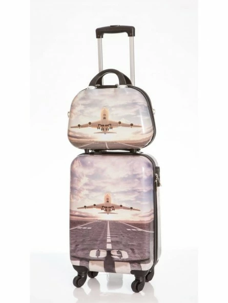 Maleta tamaño cabina con medidas totales de 55x35x20 cm más neceser a juego, ambos son rígidos de plástico tipo ABS el cual es muy resistente, ahora esta maleta sin gastos de envío y en un solo día en su casa.