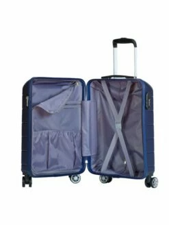Maleta de viaje tamaño cabina con medidas 55x38x20 cm. (incluye asas ruedas etc.), la capacidad es para 10 kg. de ropa aproximadamente, su peso es de tan solo de 2,30 Kg.