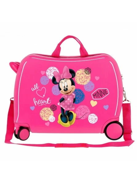 Maleta infantil correpasillos Disney Love Minnie All Heart de 38x50x20 cm. Tiene una capacidad de 34 litros y pesa 2,1 kg. Fabricada en ABS, un material muy resistente, rígido y ligero.