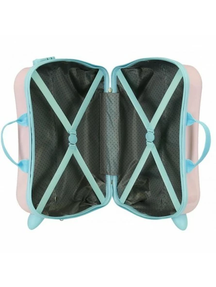 Ruedas delanteras dobles de giro multidireccional.El peso máximo recomendado que soporta la maleta es de 30 kg. Perfecta para un niño de entre 3 y 7 años.