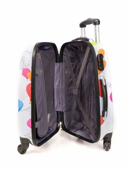 Maleta con medidas 65x42x25 cm una capacidad de 65 litros y pesa solo 3.15 kilos, diseño juvenil y divertido.