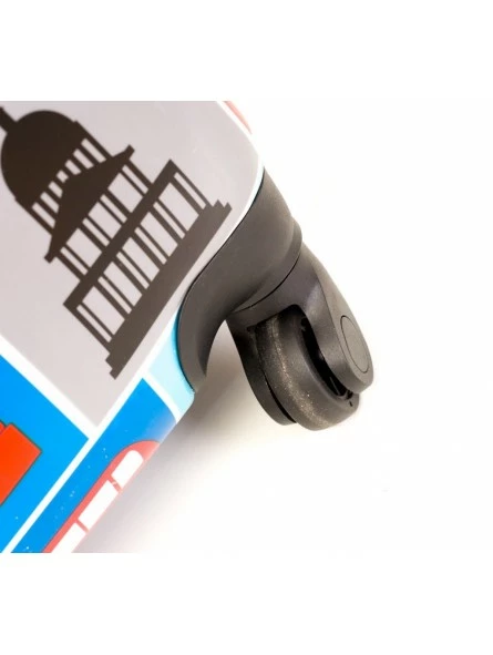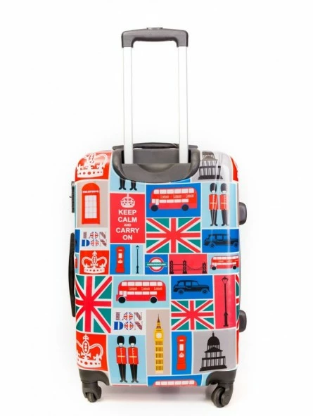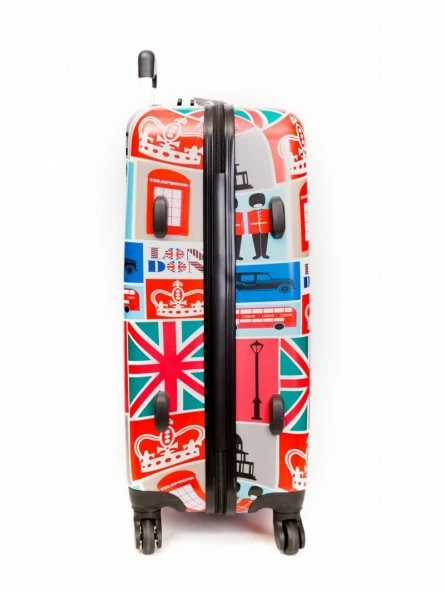 Maleta multicolor con diseño Britanico, tamaño pequeña y unas medidas totales exteriores de 55x38x23 cm. una capacidad interior de 36 litros y solo pesa 2.5 kg.
