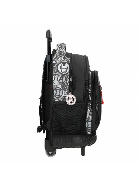 Mochila con ruedas de 32x45x21 cm. fabricada en poliéster. Doble compartimento principal con correas de sujeción interior para evitar que el contenido se mueva, un bolsillo frontal para mejorar la organización de los pequeños accesorios y dos bolsillos laterales para guardar la botella de agua y el paraguas.
