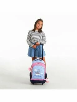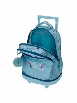 Mochila con ruedas de 32x45x21 cm. fabricada en poliéster.