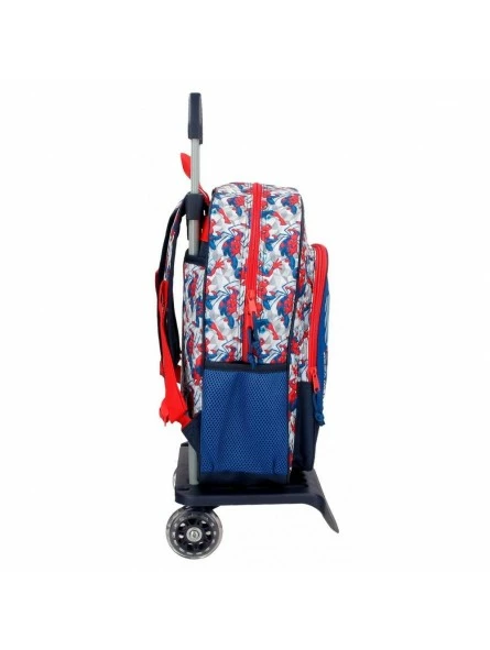 Incorpora un carro con ruedas de silicona y sistema Magic Fix para conseguir una mayor sujeción de la mochila al carro.