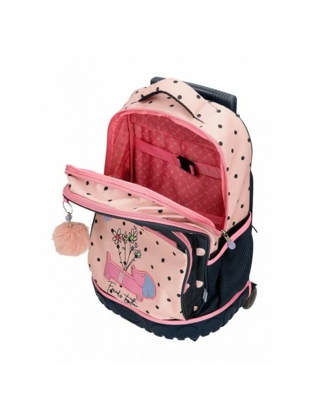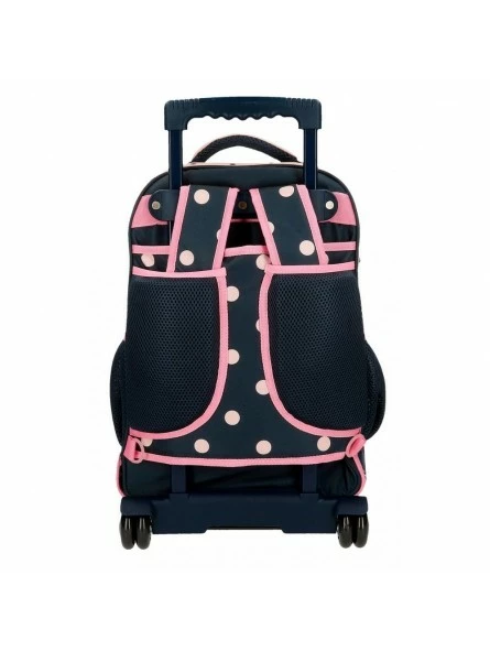 Mochila con 2 ruedas de 33×44 cm. (57 cm. incluyendo ruedas y tirador recogido)x21 cm. fabricada en poliéster. ç