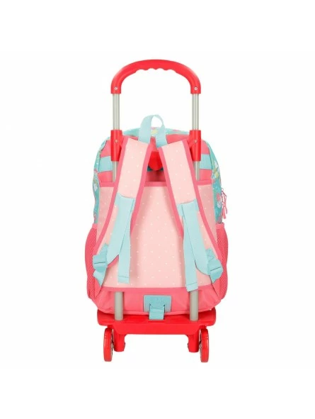 Bolsillo frontal para los accesorios más pequeños.Incorpora un carro con ruedas de silicona y sistema Magic Fix para conseguir una mayor sujeción de la mochila al carro.