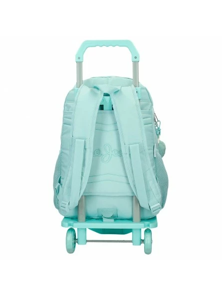Incorpora un carro con ruedas de silicona que puede quitarse fácilmente si prefieres llevarla a la espalda.
