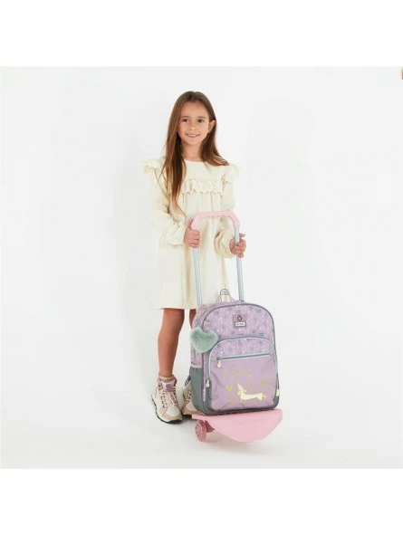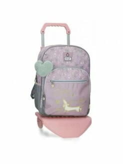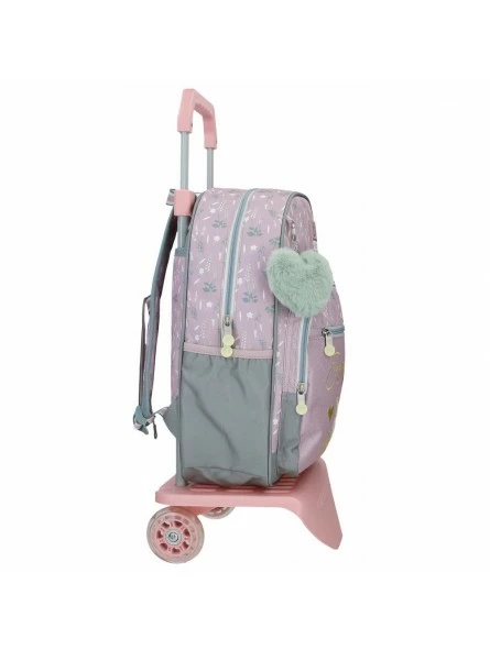 Incorpora un carro con ruedas de silicona y sistema Magic Fix para conseguir una mayor sujeción de la mochila al carro.