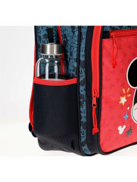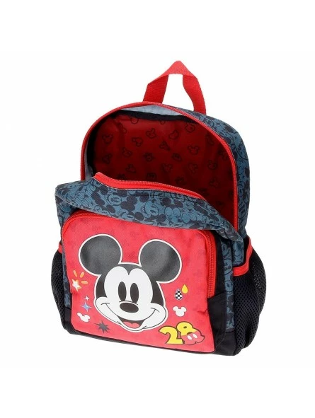 Dos bolsillos laterales y bolsillo frontal para guardar la botellita de agua, pequeños accesorios y el almuerzo.